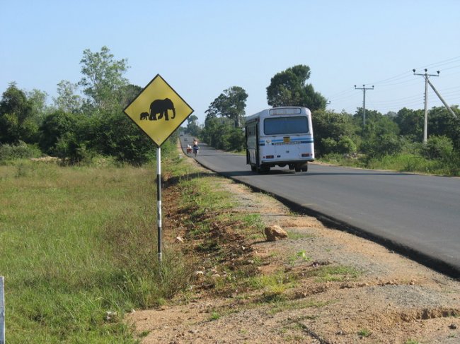 Предупреждающие дорожные знаки с изображением «фирменных» местных животных – это «фишка» многих стран. Например, на обочинах шоссе в Шри-Ланке довольно часто можно увидеть «жестянки» с «портретами» слонов, предупреждающие водителей, что в этой местности есть шанс встретиться с такими исполинами, вышедшими на дорогу.