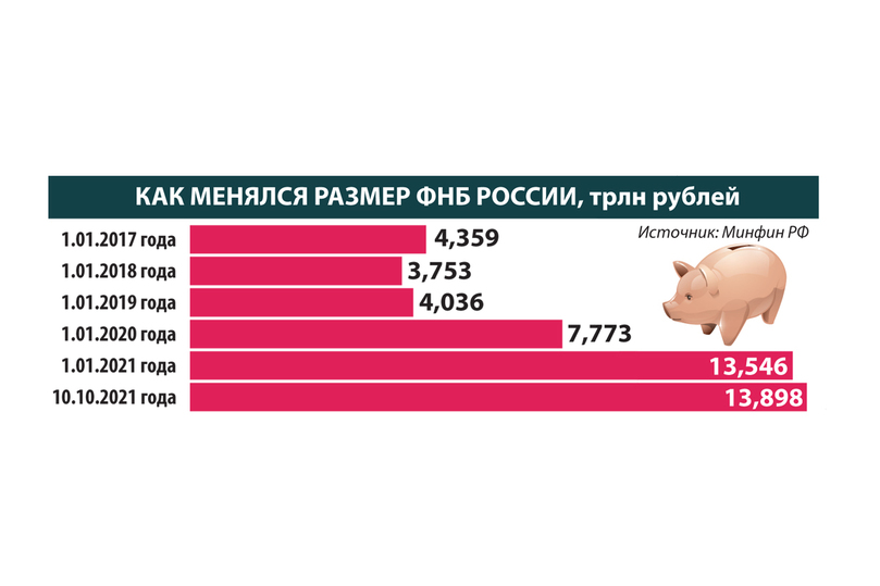 Сейчас ФНБ решает внутренние экономические задачи государства и является одновременно сберегательным и стабилизационным фондом. Например, в 2018–2019 годах 9,68 млрд рублей из ФНБ направили на софинансирование добровольных пенсионных накоплений людей. А для покрытия дефицита Пенсионного фонда в 2018 году из средств фонда потратили 1,1 трлн рублей.
