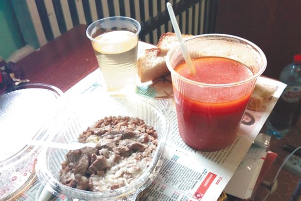 — Питание просто ужасное. Единственное, что здесь можно еще есть, так это супчик в обед. Хотя мяса в нем нет. Каша из сечки — это просто какой-то клейстер, замазка, вся склизкая. Дают полулитровый стаканчик, который наполовину заполнен кашей, граммов 200–250 крупы. Вторые блюда есть просто невозможно, они все отдают старым прогорклым маслом. Видимо, на нем готовят по нескольку раз. У всех моих соседей стали болеть желудки, они мучаются изжогой… Когда отказываемся от предложенных блюд, нам повара говорят: «Нет, вы возьмите и сами выбросите потом в ведро. Наша задача — вам все это вручить».