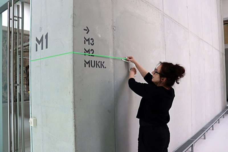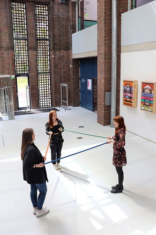 В бранденбургском Музее современного искусства в Котбусе (100 километров к юго-востоку от Берлина) посетители разбиваются на пары и держатся за противоположные концы специальных тростей в 1,5 метра. Такую минимальную дистанцию правительство Германии просит соблюдать людям, которые не живут вместе. Это же расстояние размечено на полу при помощи клейкой ленты.