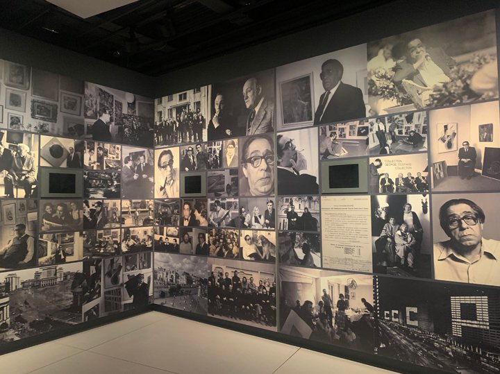 Перед нами мечта Георгия Костаки, которая так и была осуществлена – версия возможного, но не случившегося музея современного искусства в Москве. Начинается выставка с фотоальбома – рядом с крупным снимком Зверева и Костаки вся жизнь собирателя. Детство, отрочество, юность… Вот он с матерью, которая происходила с обедневшей греческой дворянской семьи. Вот с братьями и сестрой – в семье было четверо сыновей и дочь. Вот фото с мотоциклами – это увлечение ему привил дядя, заядлый гонщик. Вот свадьба с Зинаидой Панфиловой, они поженились, когда Георгию было 19, и всю жизнь прожили вместе. У них родилось четверо детей. Вот фото из посольства – Костаки в водительской кепке рядом с солидным дипломатическим авто. А дальше – бурная художественная жизнь. Самые известные художники того времени, которые получили славу многим позже и отчасти благодаря Костаки.