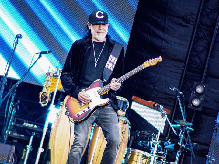 Перед «Машиной Времени» публику разогревали ни много ни мало Crossroads, так что вечерок выдался более чем звездный. Сергей Воронов и его банда относятся к тем группам, которые не раздражают даже тех, кто блюз на дух не переносит. На тему того, как это у них получается, возможно, кто-то сможет написать научный трактат, но и в его отсутствии совершенно ясно: выступления Crossroads обладают завидной убедительностью, при которой и нудноватые соло запросто сходят им с рук. Ну и посмотрите на мистера Воронова… Седая борода, потертый Fender, идеальный черный маникюр. Он элегантен, как рояль и рок-н-роллен до кончиков своих лихо подкрученных усов. Причем и на сцене и за ее пределами. После сета группы 58-летний Сергей прогулялся среди машин и людей, нежно обнимая свою молодую (правильнее сказать очень молодую) красавицу жену, и никому не отказывал в светских селфи.