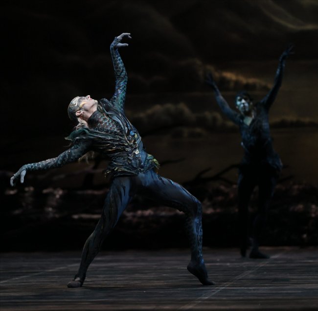 Самое впечатляющее решение — образ, созданный Начо Дуато с Иваном Зайцевым и Ангелиной Атлагич. Их Ротбарт, похожий на белокурого эльфа из «Властелина колец», несомненная удача. Иван Зайцев в своем танце конгениален эффектной задумке Дуато. Придуманные Дуато два помощника, свита Ротбарта (Константин и Михаил Ткачуки) сливаются с ним в танцевальное трио, словно крылья поднимают своего повелителя в воздух.