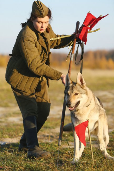 С актерами все чуть проще. В роли девушки-собаковода снялась Юлия Афанасьева. Она, как и исполнители роли Джульбарса, тоже играет исторического персонажа. Ее героиня Дина Волкац во время войны готовила собак, которых использовали как саперов и как живое оружие, обучая животных закладывать мины под танки. Фактически четвероногих посылали на верную смерть, но военные кинологи научили собак действовать таким образом, чтобы у них оставался шанс выжить.