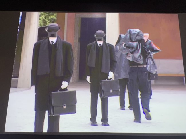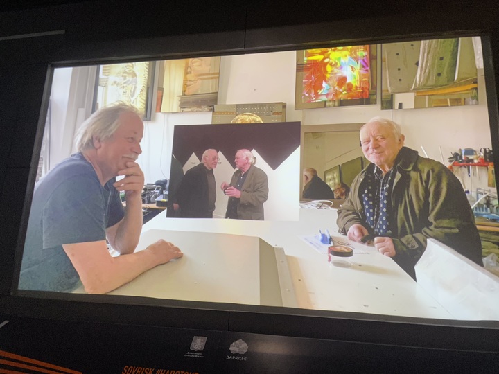 Помимо витрин с картинами мэтров на выставке есть три больших экрана, где показываются видеоарт или документация знаковых арт-событий, в которых не последнюю роль сыграл Пацюков. Среди них — проект Вадима Захарова «Черные птицы», который представлял Россию на 55-й Венецианской биеннале в 2013 году. Есть одна ранняя видеоработа Леонида Тишкова «Снежный ангел» — 1998 года. Или проект 2011 года композитора Владимира Мартынова и художника Владимира Смоляра: первый написал фантазию по мотивам Баха, второй создал визуализацию мелодии, которая будто бы приснилась немецкому классику. Все видео, очень разные по темам, сюжетам и форме, сложены в единый ритм — это еще одно посвящение их вдохновителю, раскрывающее идею проекта.