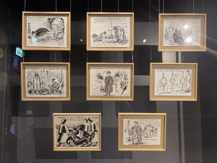 На выставке в Подземном музее парка «Зарядье» всего три витрины с реальными, точнее сказать, физическими картинами и объектами. За стеклом здесь, например, серия забавных рисунков Леонида Тишкова «Диалог с великими», которые посвящены Сезанну, Малевичу, Кандинскому, Дюшану, Кафке, Флоренскому, Пикассо, Кейджу, Бойсу. А на сенсорном экране неподалеку можно найти тексты Тишкова и Пацюкова, разъясняющие глубинный смысл иронических историй. Все они основаны на реальных событиях из жизни великих. Вот, например, Казимир Малевич нарисован среди своих героинь с картины «Девушки в поле»: крестьянки с безликими головами-овалами наказывают своего создателя за то, что он изобразил их такими. В судьбе основателя супрематизма и правда случилось так, что принципиально новый взгляд на искусство сначала возвысил его чуть ли не до ранга небожителя, а позже это же видение подверглось суровой критике. Споры о художнике не утихают и сейчас. «Казимир Малевич — фигура парадоксальная и одновременно великая в своем парадоксе… Сегодня мы можем размышлять о «Черном квадрате» в связи с открытием реликтовых частиц, первых элементов начал нашей Вселенной — в феноменальности теории Большого взрыва. Многие физики уверены, что сейчас мы живем в «конденсированной» или в «замороженной» фазе Вселенной, которая принципиально отличается от более ранних эпох», — пишет Пацюков, давая свой оригинальный ответ о значении супрематиста. На тач-падах можно найти десятки высказываний искусствоведа о художниках разных эпох. Здесь же показана плеяда современных авторов, на которых он оказал влияние. А это почти все значимые мастера нашего поколения и не только — есть и довольно молодые художники, которых Виталий поддерживал словом и делом.