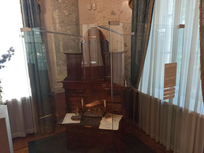Другая комната наполнена работами Павла Полянского. Художник изображает женское тело – в ЧБ и цвете. А еще рисует картины будущего в стиле фотореализма. Так создаётся некий контраст, который подчёркивает два параллельных мира – настоящего и будущего. Картины современного художника соседствуют с рабочем стола хозяина дома.