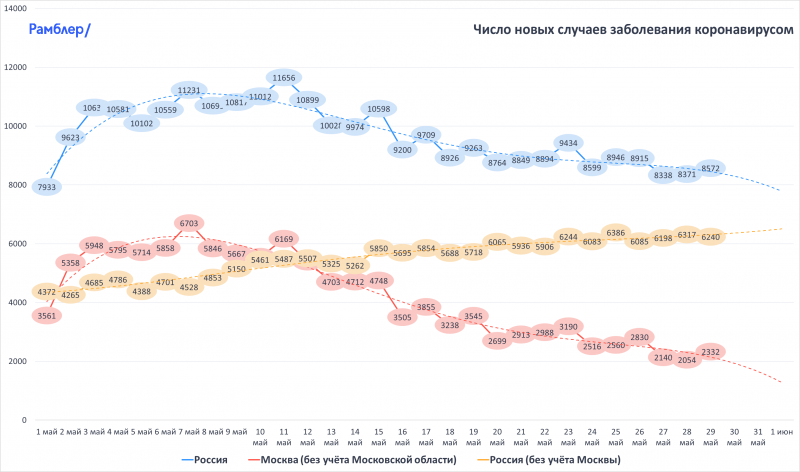 "Эти две группы мы объединили. Количество таких смертей за апрель, по данным на сегодняшний день, составляет 1675 в целом по Российской Федерации, из которых 1136 — это там, где COVID сто процентов подтвержден всеми данными", — сказала Голикова.