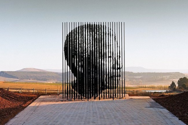Лет 10 назад в небольшом южноафриканском городке Ховик появилась по-настоящему «эксклюзивная» скульптурная композиция. На постаменте-площадке установлены полсотни вертикальных металлических «шестов» или колонн. Некоторые из них имеют переменную толщину или некие фигурные наросты. Первое впечатление, что это просто хаотичная группа высоких палок. Однако если взглянуть с определенного ракурса, вертикали «шестов» образуют человеческий портрет. Он легко узнаваем: Нельсон Мандела, знаменитый борец за права человека в период разгула апартеида в Южной Африке, а впоследствии - 8-й президент ЮАР.