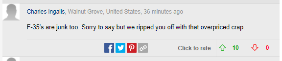 «F-35 тоже мусор. Извините, но мы обобрали вас с этой дорогой ерундой», – признает комментатор из США.