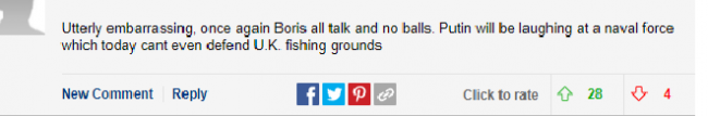 «Путин посмеется над военно-морскими силами, которые сегодня не могут даже защитить британские рыболовные угодья», – считает автор еще одного поста.