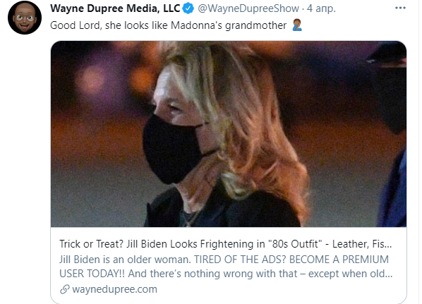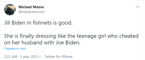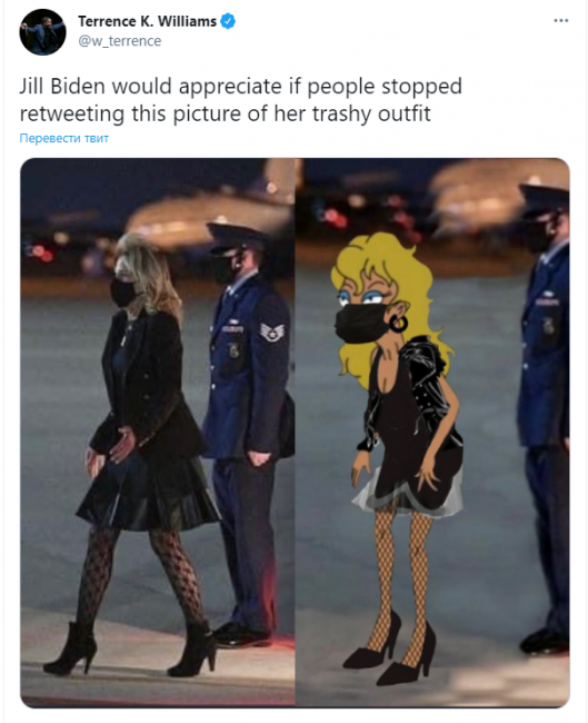 «Джилл Байден в рыболовных сетках хороша. Она наконец-то одевается как девочка-подросток, которая изменила своему мужу с Джо Байденом».
