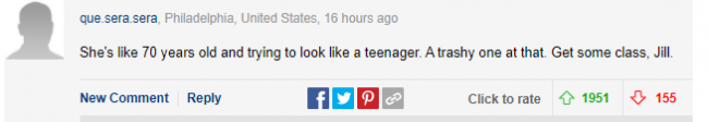 «Ей около 70 лет, и она пытается выглядеть как подросток. К тому же дрянной. Иди на урок, Джилл!» – возмущается комментатор.