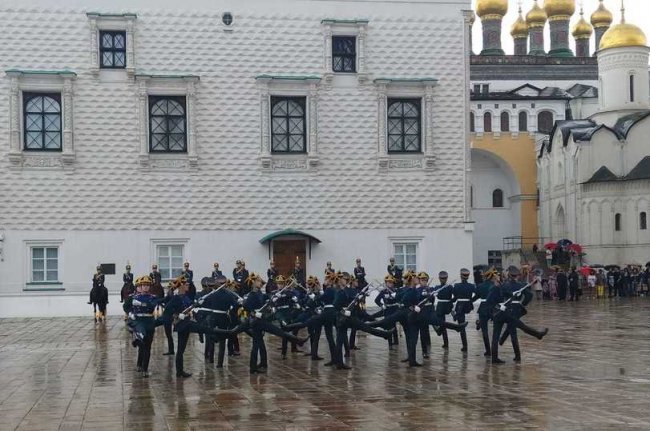 Ну а сегодня планы чуть было не попутал дождь, который молниеносно перерос в ливень. Тротуары в Александровском саду и старинная мостовая, ведущая от Кутафьей башни в самое сердце столицы, запузырились от крупных капель и превратились в мелкие речушки. Но замочить ноги не побоялись ни зрители, ни, разумеется, военные. Правда, многие до последнего сомневались, что красавцы-вояки из Президентского полка решатся выступать по такой погоде.