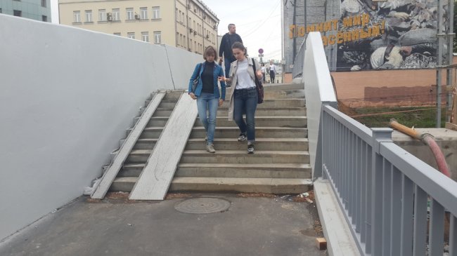 Так или иначе — на данный момент лестница вышла неудобная. Тридцать лет назад так строили, сейчас это уже неприемлемо. На данный момент официальных комментариев о том, соответствует ли путепровод требованиям безбарьерной среды, получить не удалось. Однако некоторые вещи можно и не дожидаясь официальных комментариев увидеть своими глазами.