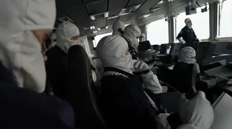 В целом по видео можно понять, что среди экипажа царит напряжённость. Когда эсминец начали сопровождать российские самолёты, они надели белые маски, предназначенные для термозащиты в случае пожара.