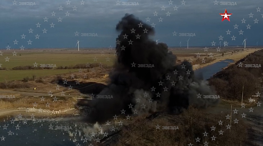 Симферополь, 26 февраля. Подразделения министерства обороны в Херсонской области взорвали дамбу, которая перекрывала Северо-Крымский канал. Кадры взрыва показал телеканал «Звезда».